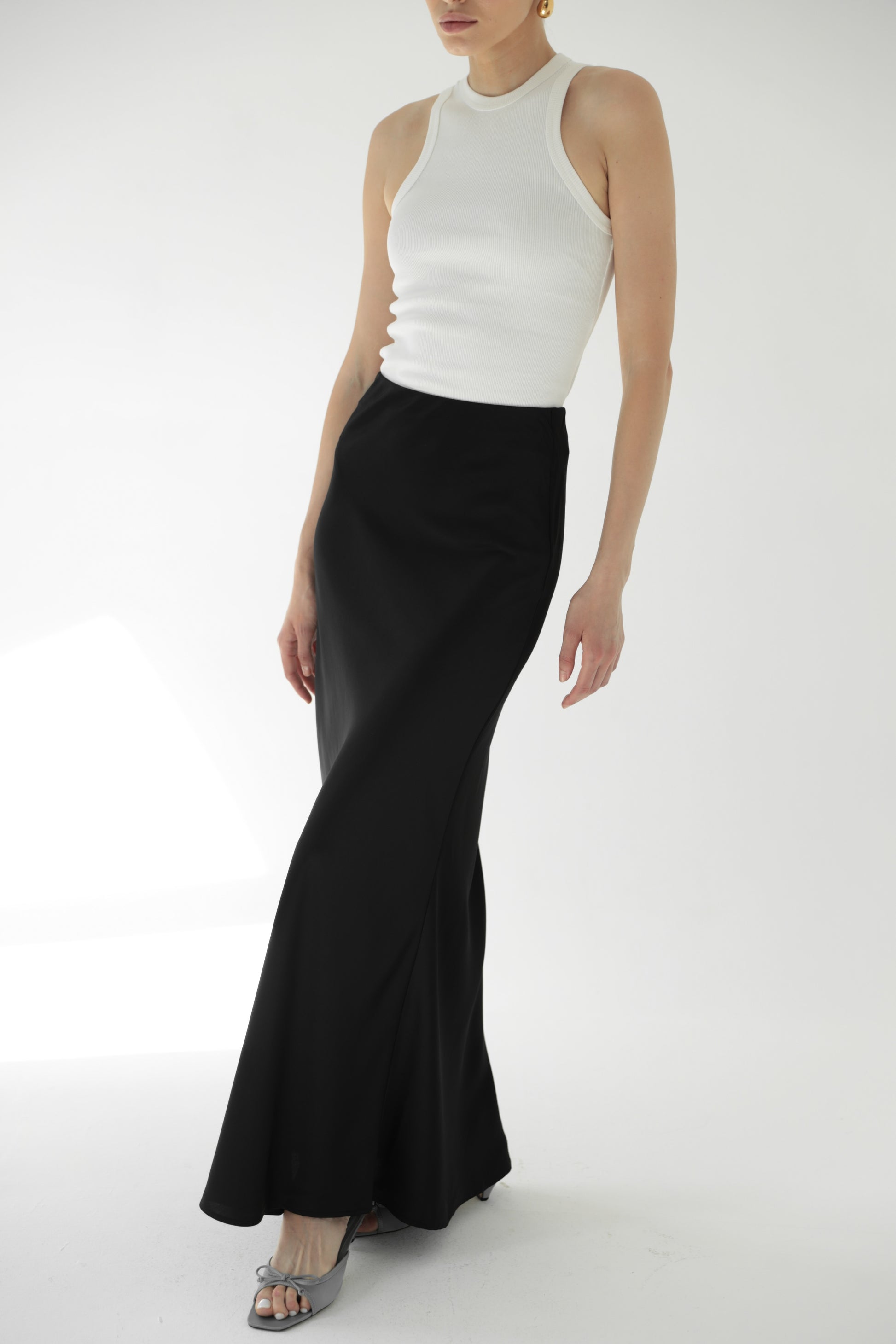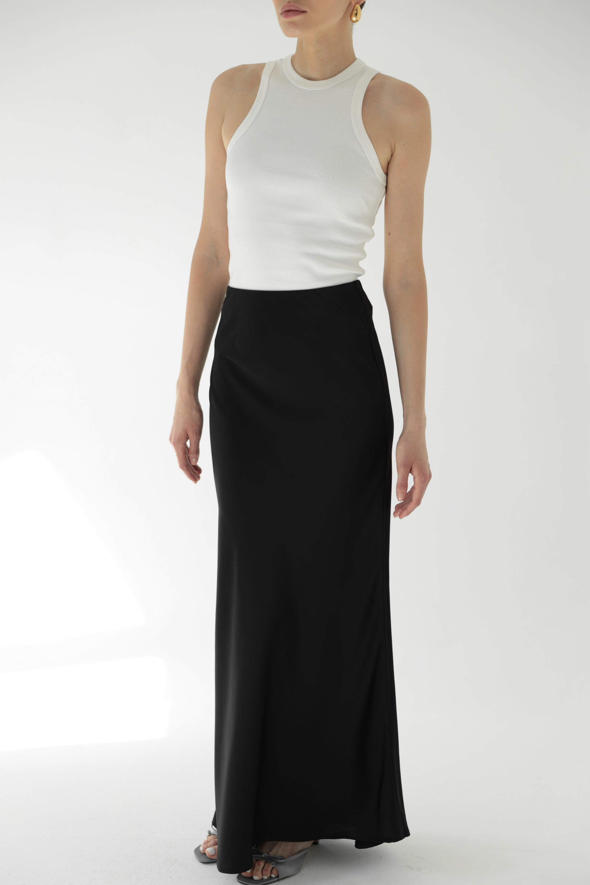 Жіноча чорна спідниця максі з сатину – це елегантний і стильний вибір для створення розкішних образів. Прямий крій підкреслює фігуру, а блискучий сатин надає вишуканості та грації.