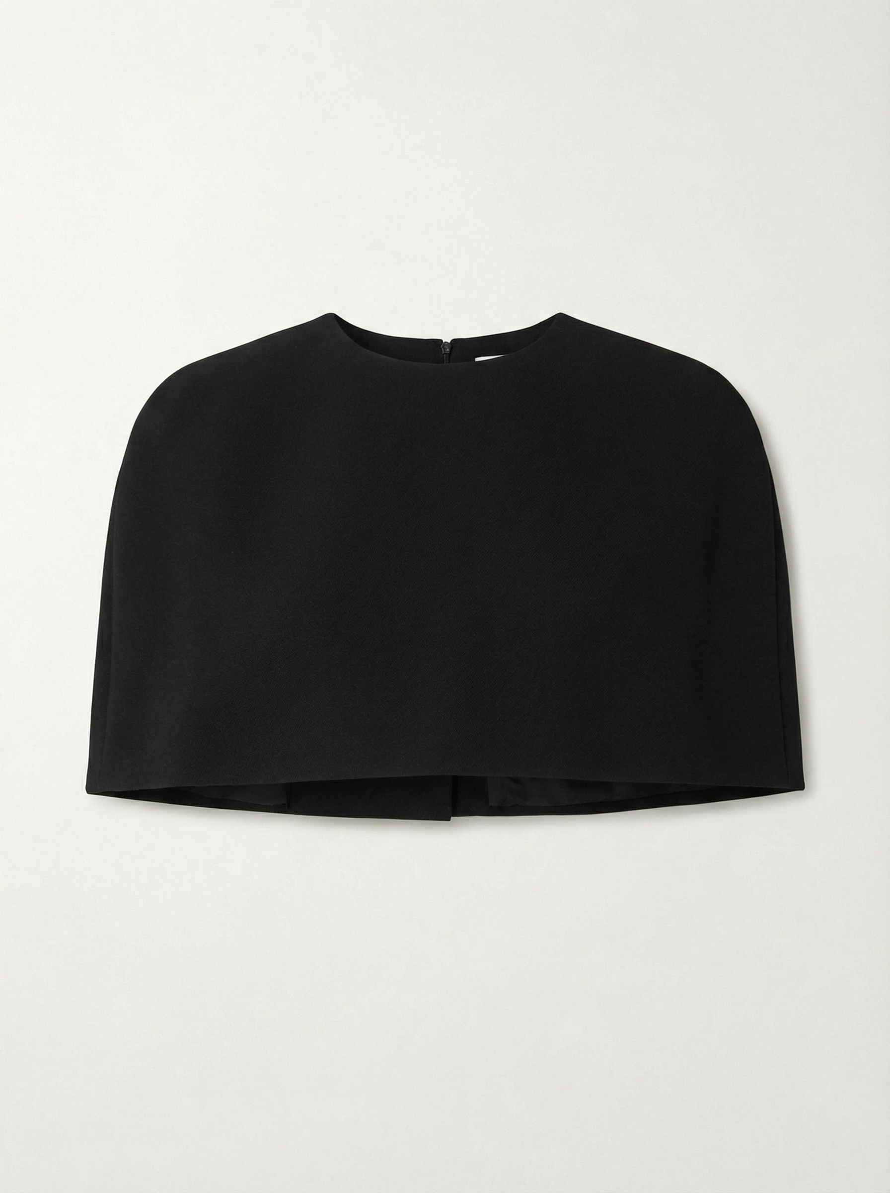 Структурований чорний кейп – це мінімалістичний та елегантний елемент гардеробу, який вирізняється чистими лініями та сучасною формою. Чітка конструкція створює виразний силует, зберігаючи легкість і рухливість моделі. Застібка на замок ззаду забезпечує акуратну посадку. Такий кейп легко доповнить ділові, вечірні та повсякденні образи, додаючи їм стриманого шику.