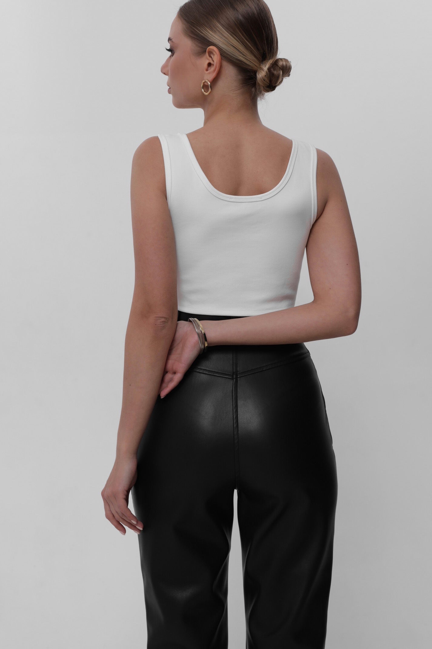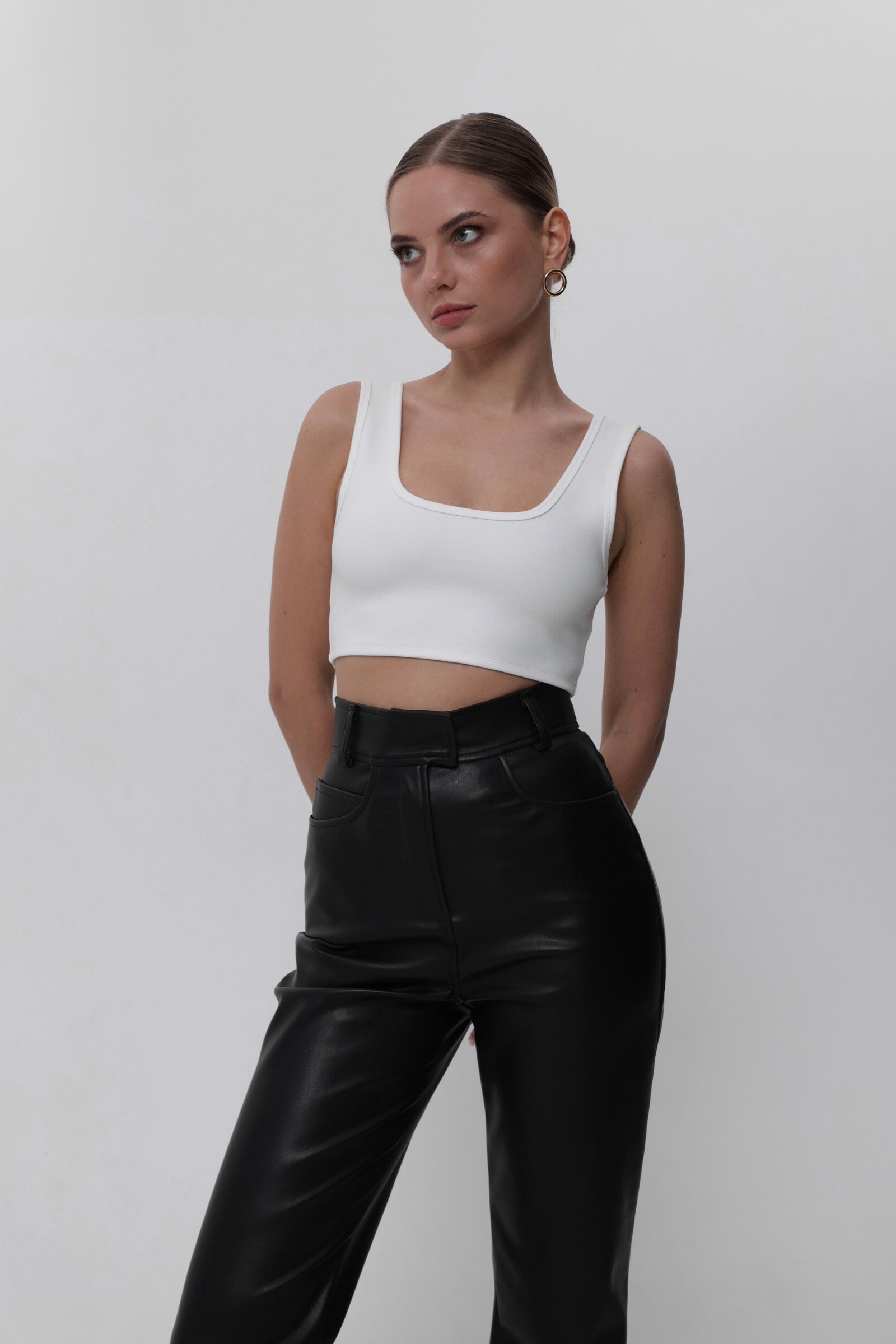 Жіночий топ молочний – це стиль, мінімалізм та легкість у носінні. Облягаючий крій створює елегантний силует, а лаконічний дизайн робить його універсальним: він чудово поєднується як із класичними палаццо, так і зі спідницями.