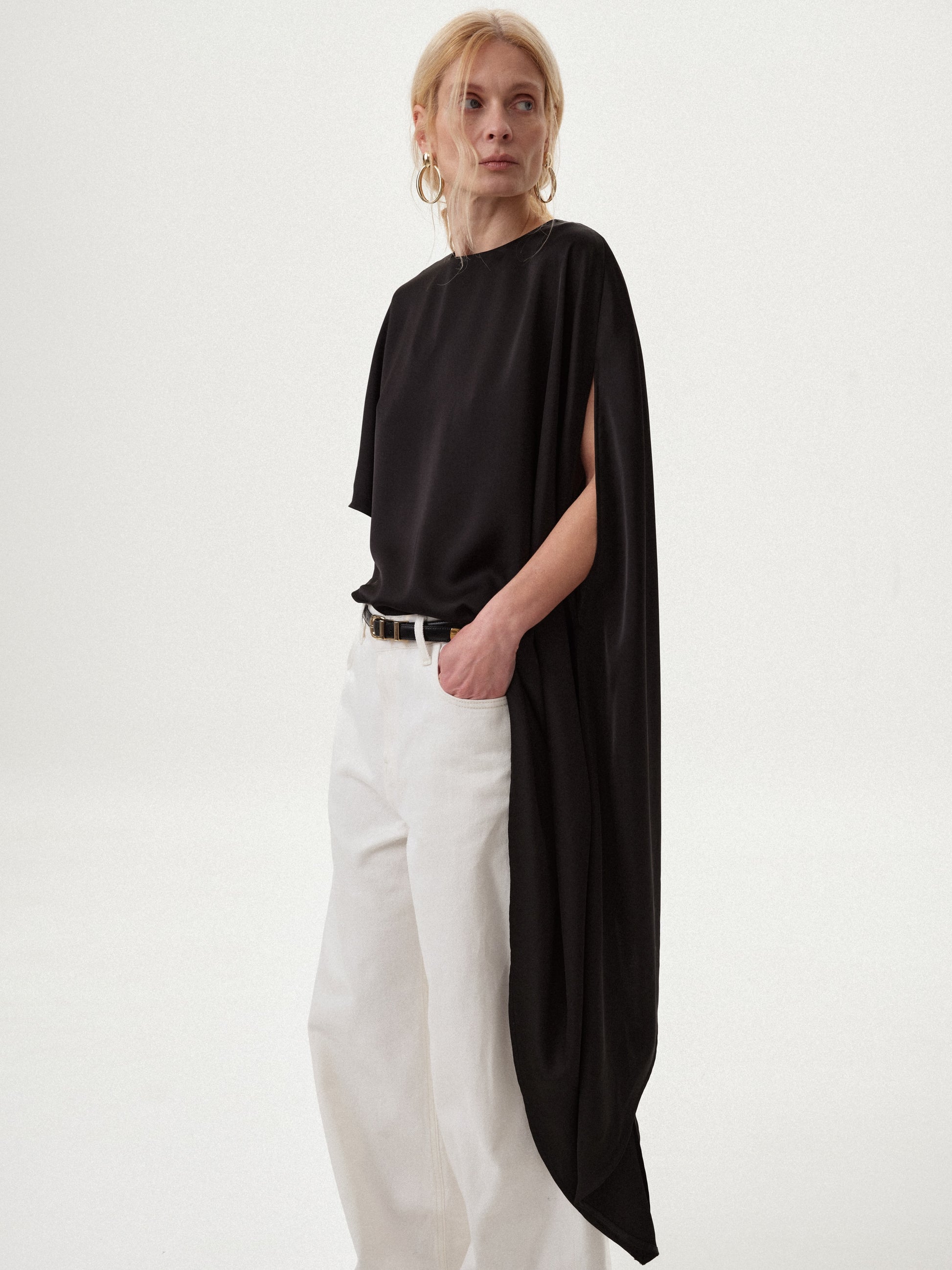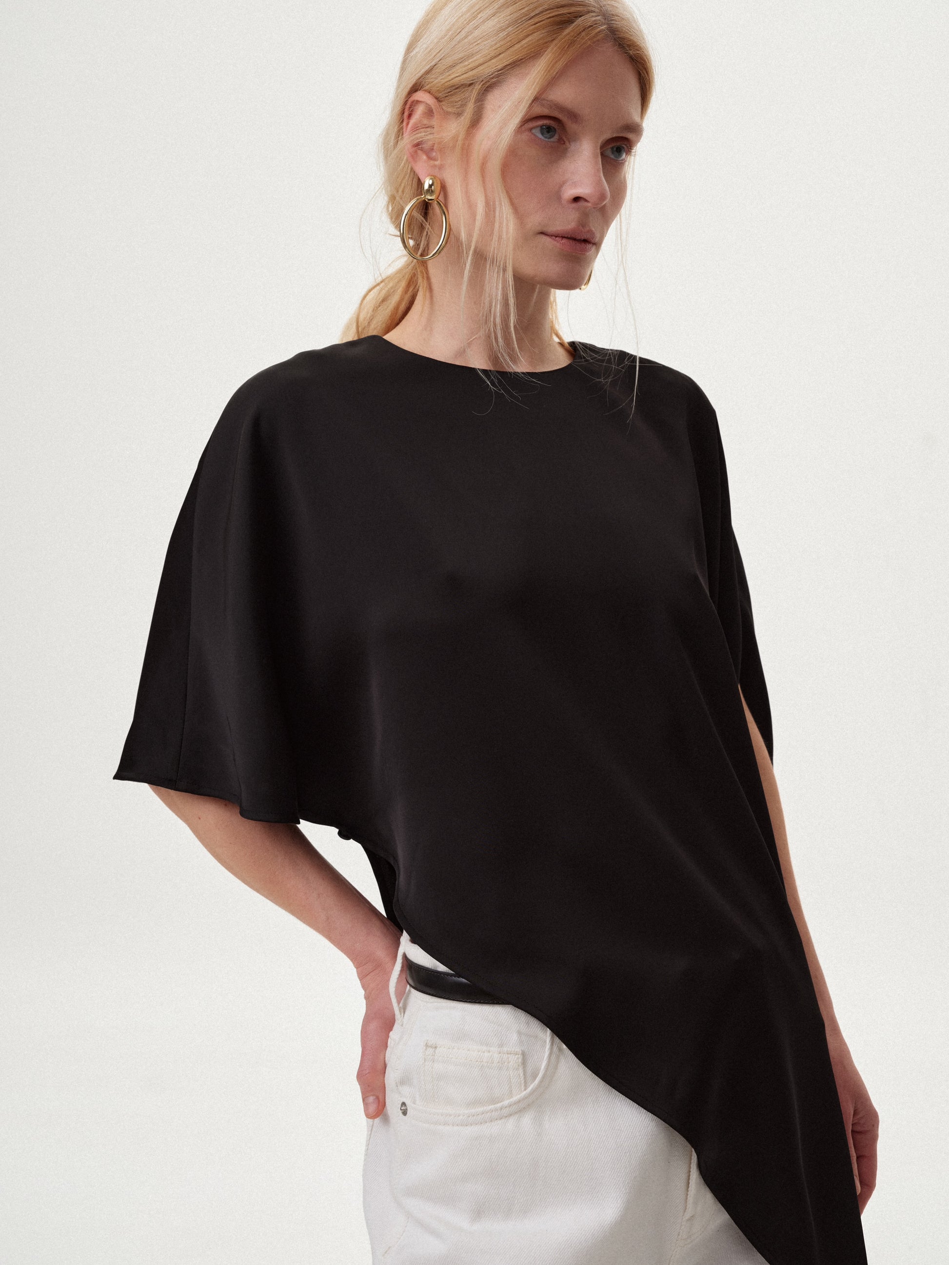 Топ з асиметрією чорний сатиновий