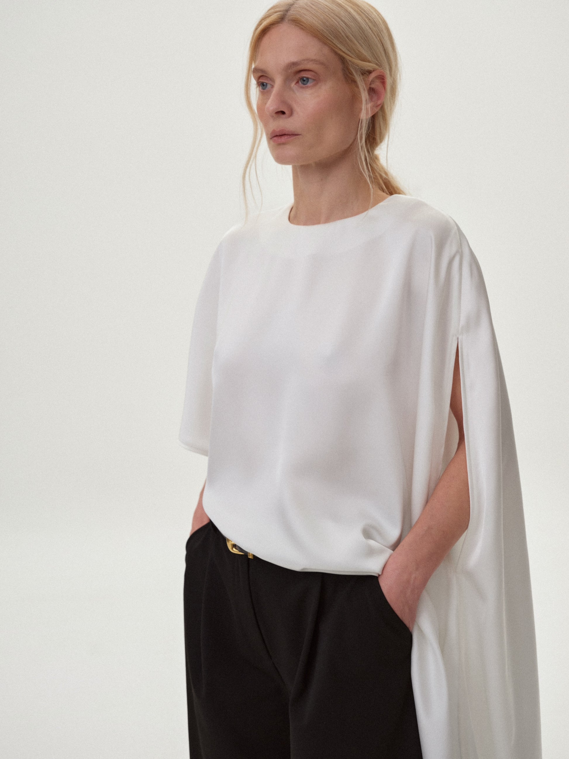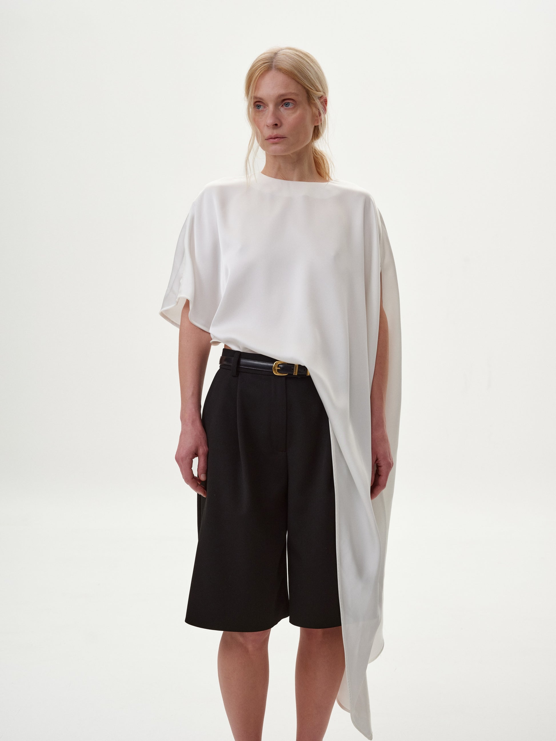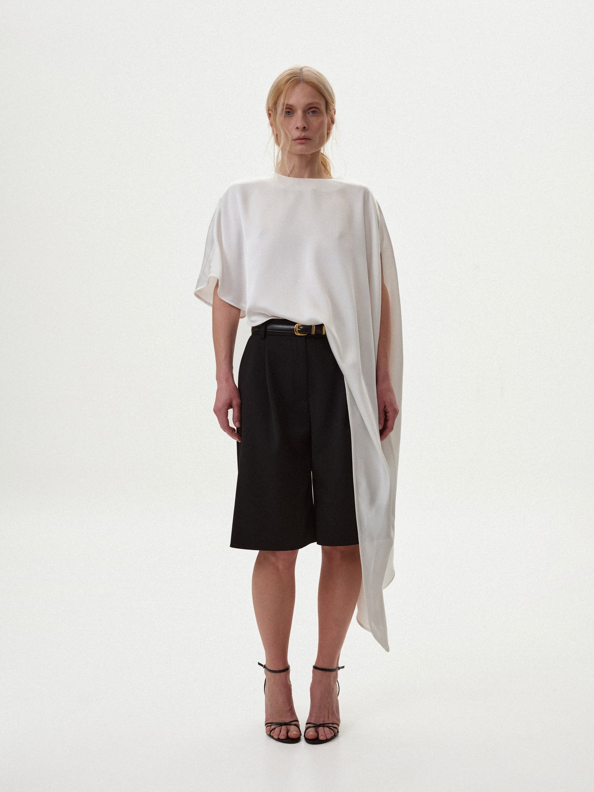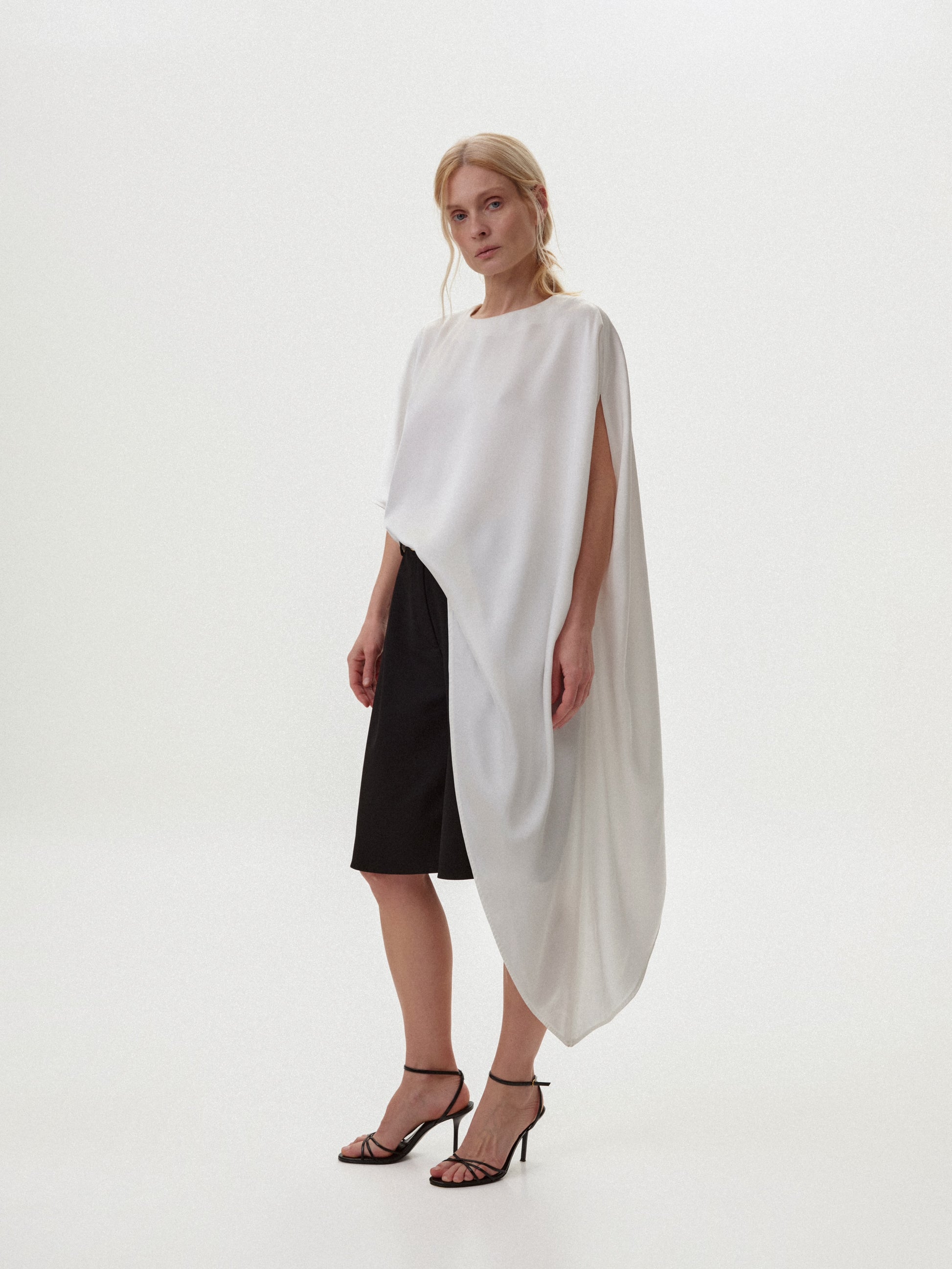 Топ з асиметрією молочний сатиновий