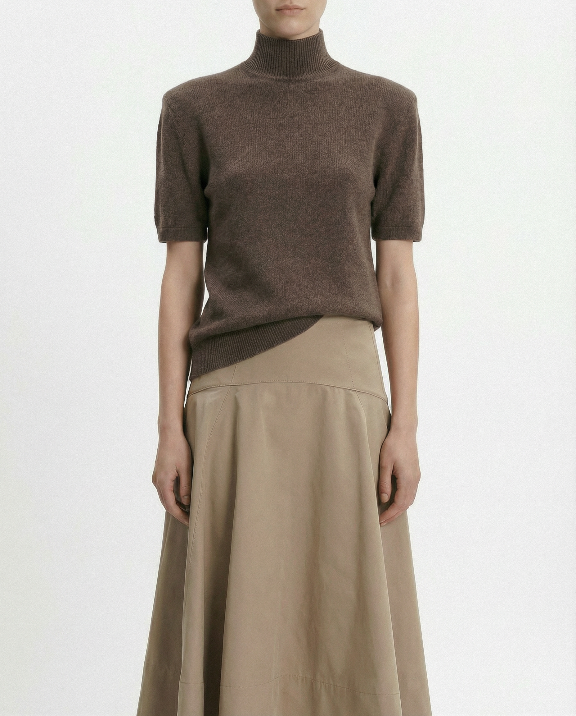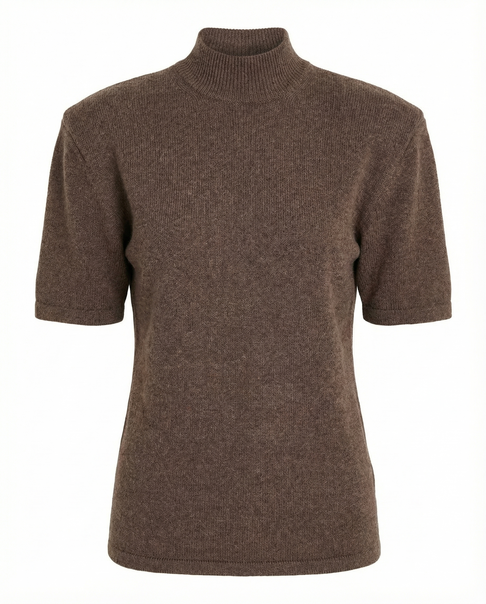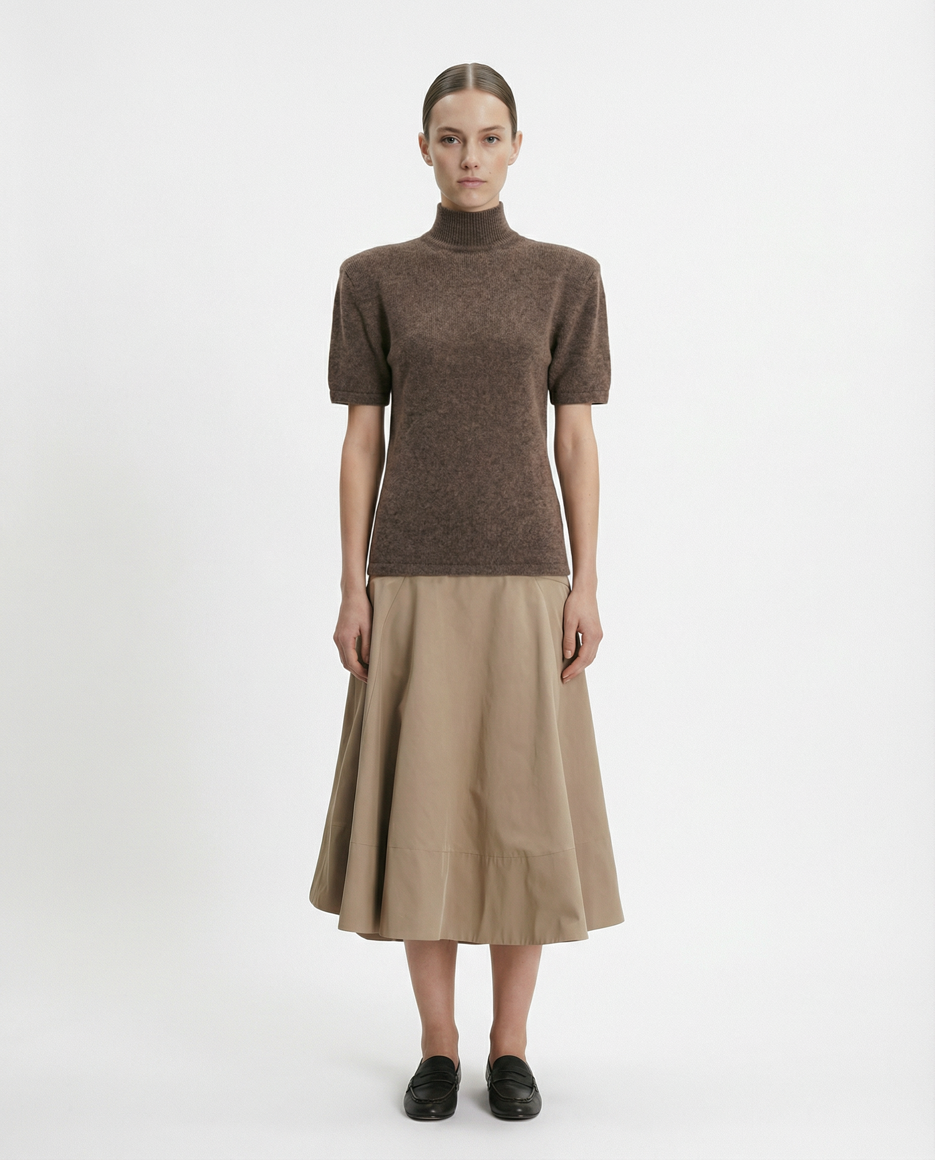 Вовняний гольф на короткий рукав з акцентними плечима бежевий