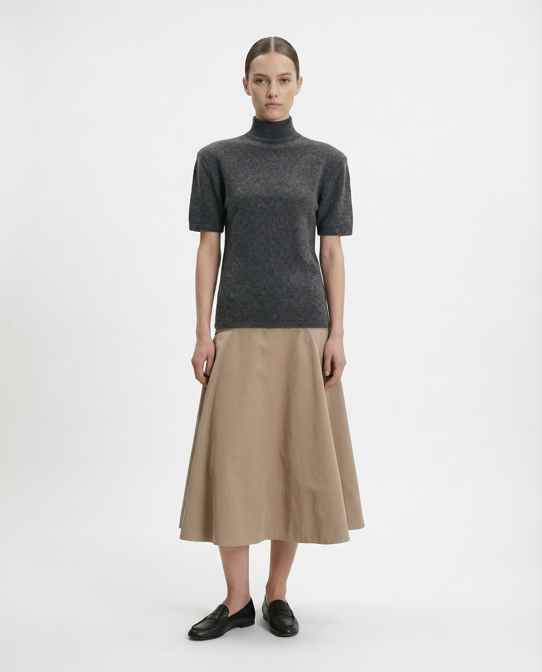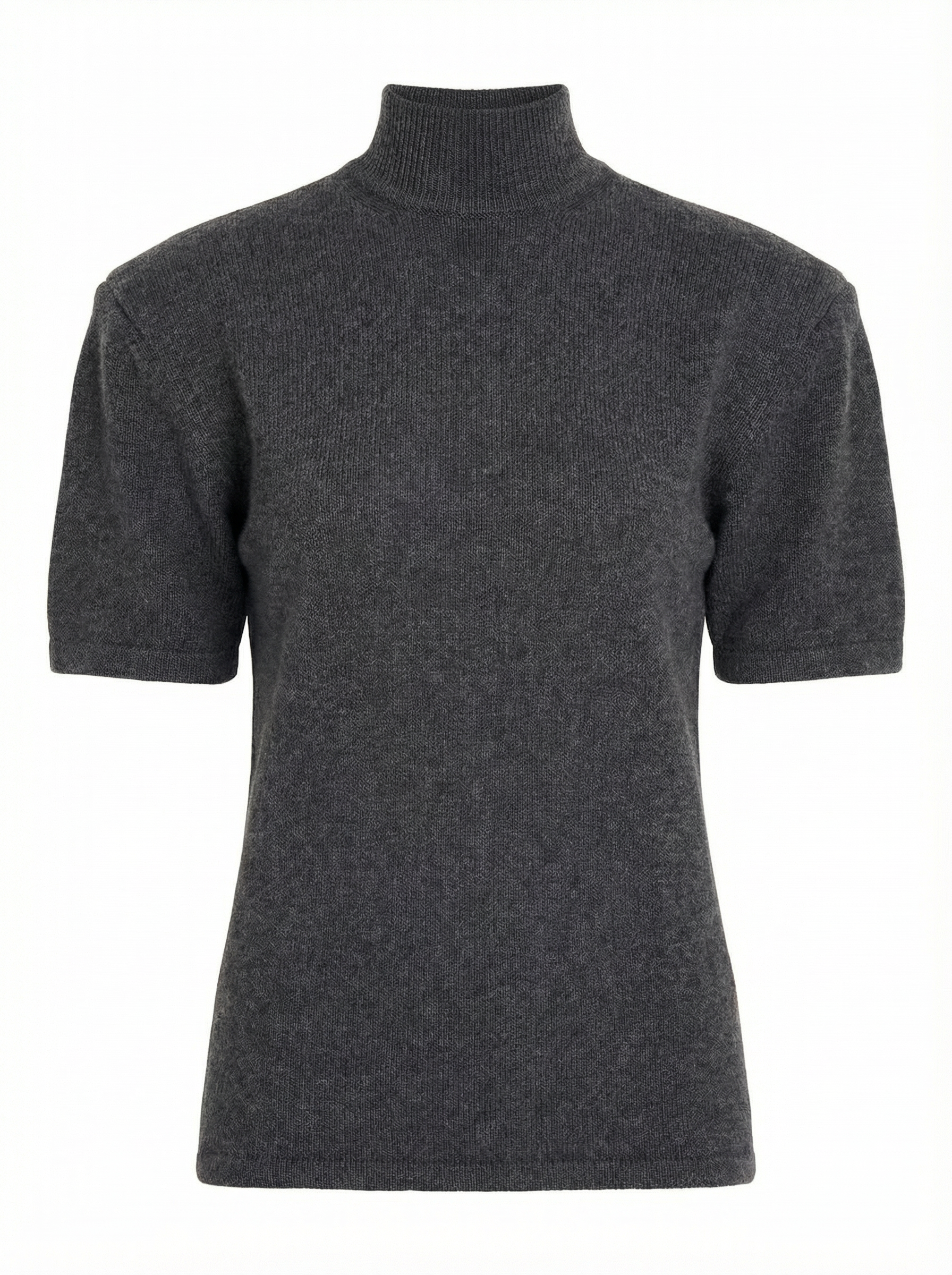 Вовняний гольф на короткий рукав з акцентними плечима графітовий