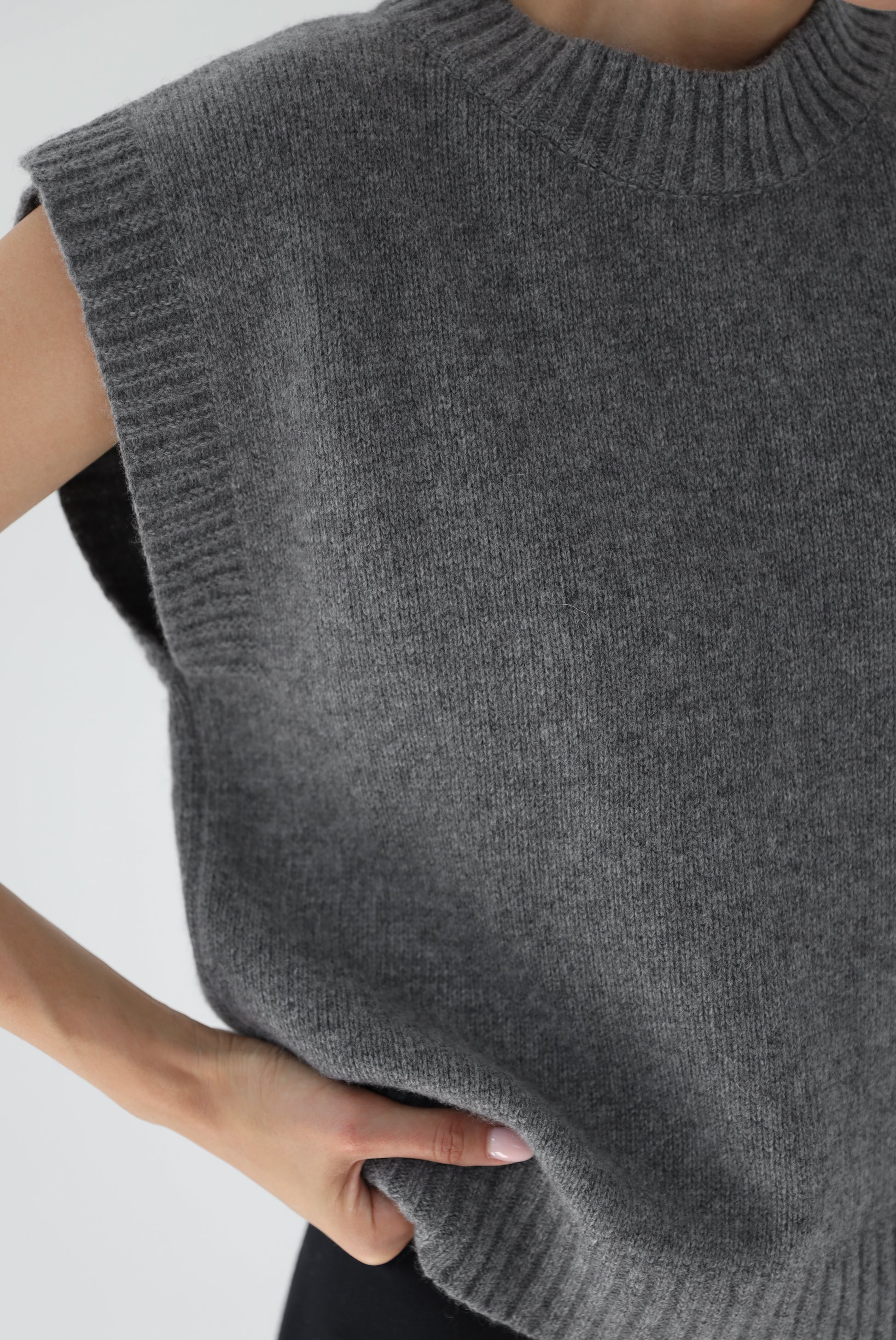 Сірий відтінок легко комбінується з різними елементами одягу, такими як сорочки, футболки, сукні або жакети, додаючи образу стильний та затишний акцент. Жилет можна носити як самостійно, так і в багатошарових луках, що дозволяє створювати різні стилі на кожен день.